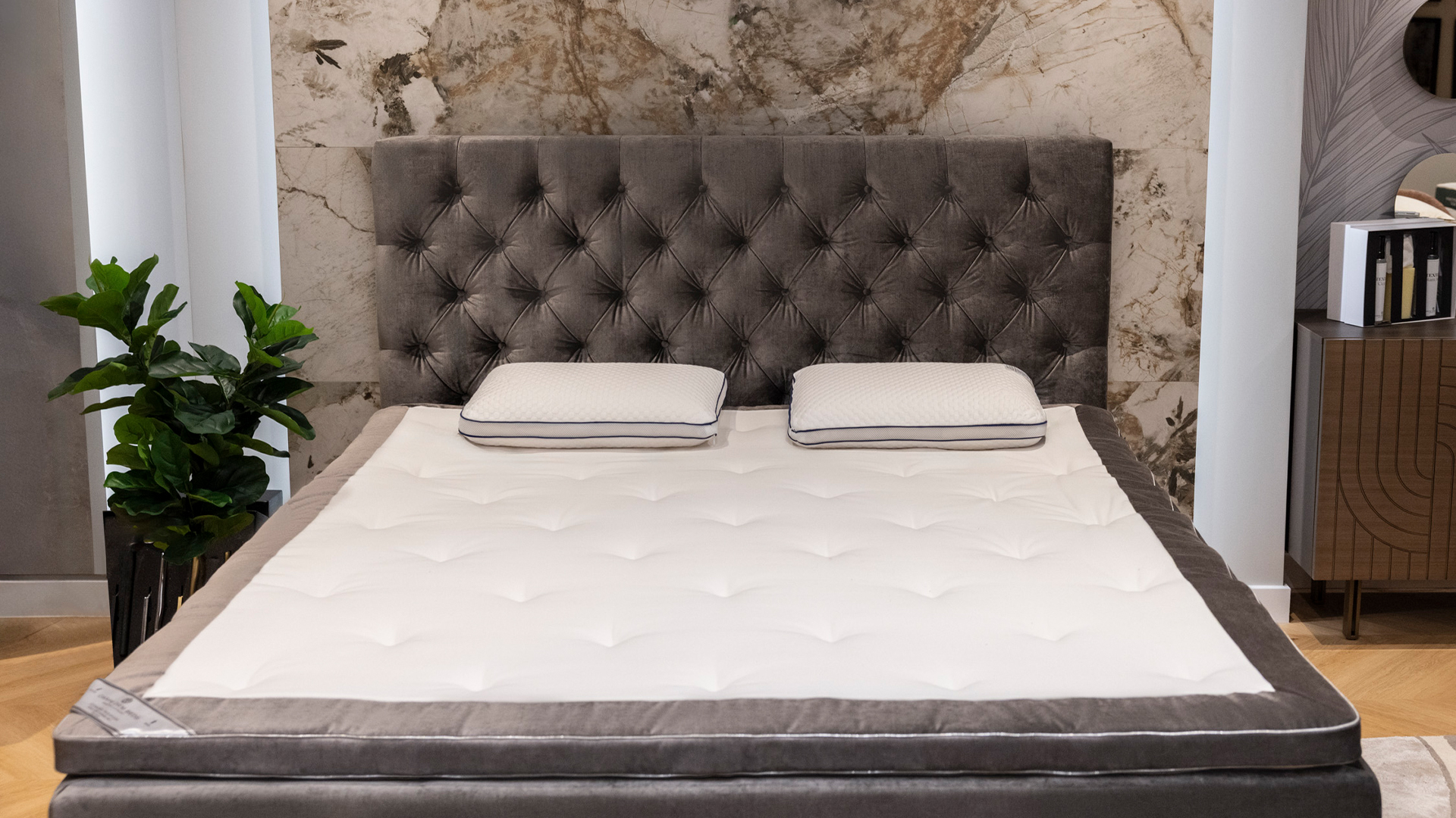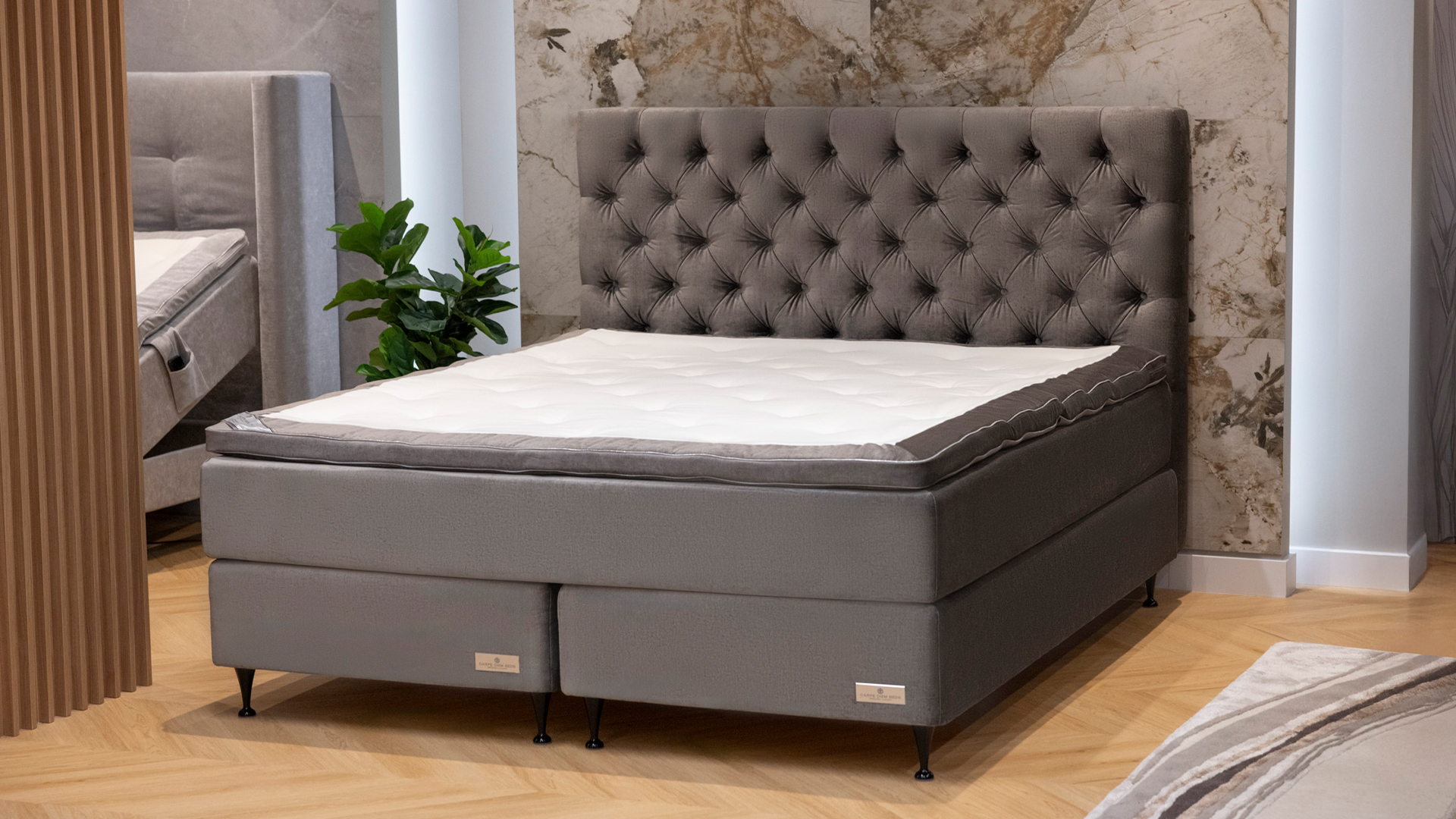 A classic, deeply quilted headboard that exudes dignified elegance. Provides soft back support when reading in bed. Fits all Carpe Diem Beds except Vindö. Can be placed on the floor or mounted at bed height. Fittings and adjustable legs are included. There are 44 types of fabric to choose from.