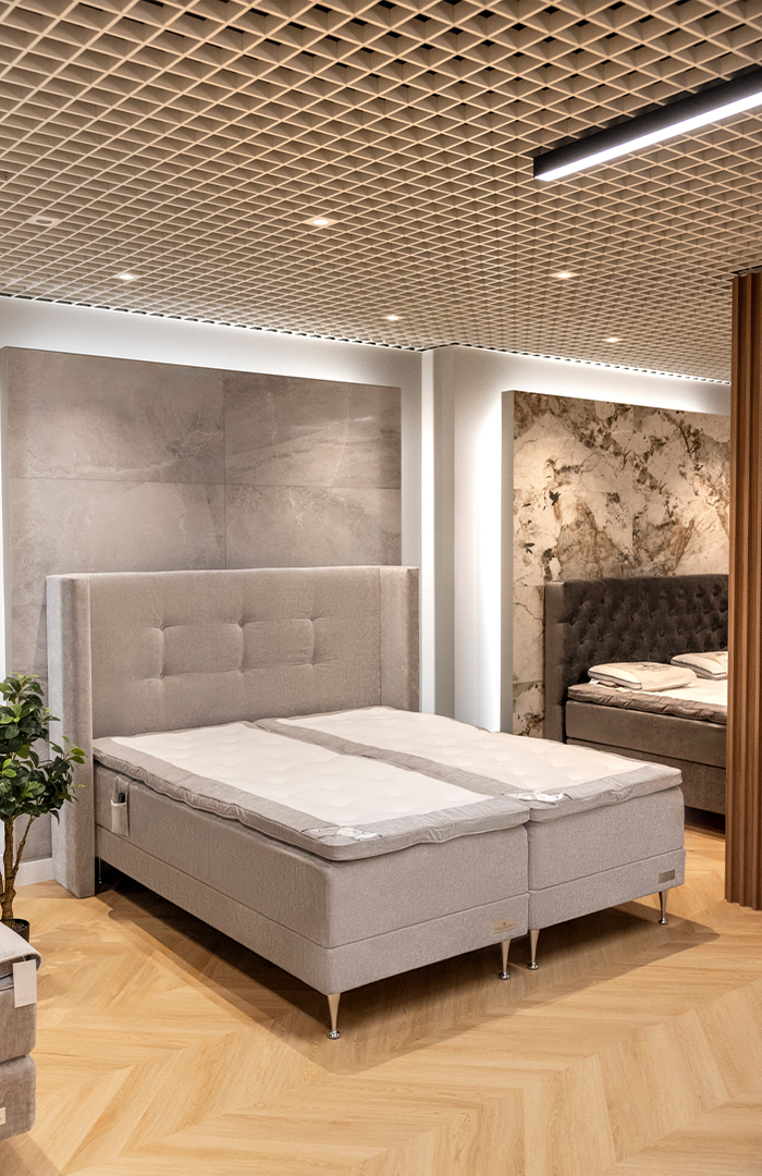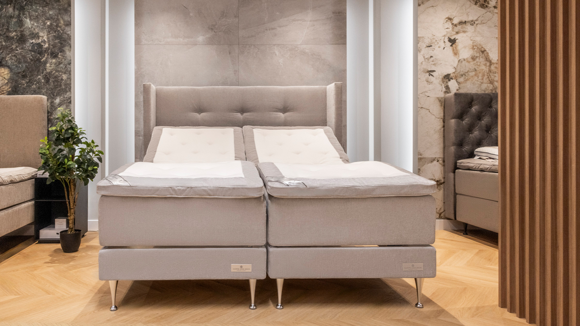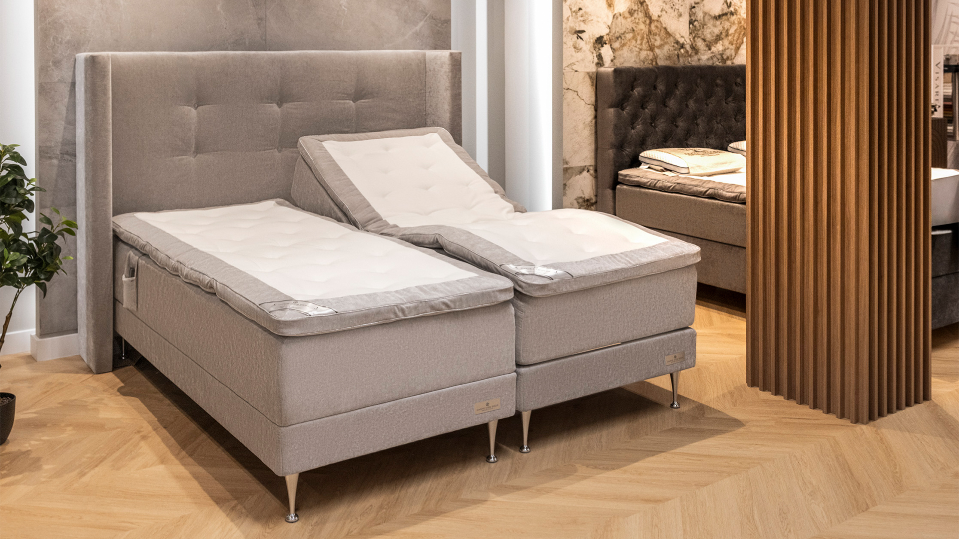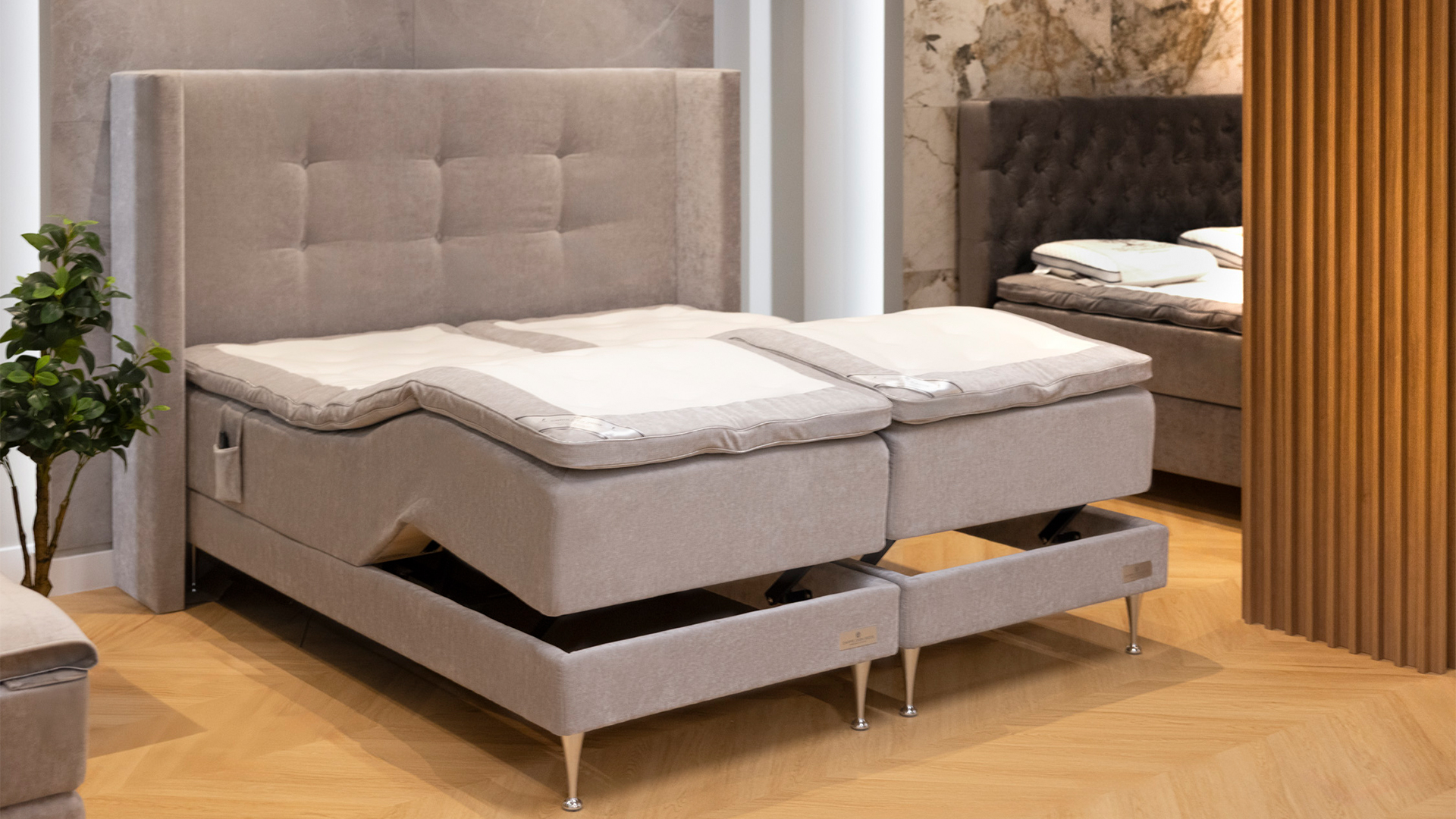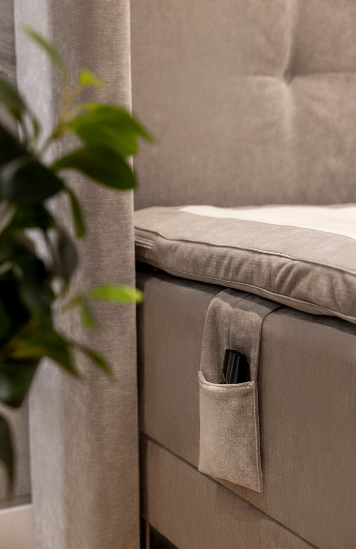Marstrand by Carpe Diem Beds is an elegant bed with a timeless design, customisable to your needs and designed to provide the highest level of comfort. It is adjustable, allowing you to set the position of the headrest and footrest according to your needs. Its numerous functions can be operated using a remote control. It features LED lighting.
