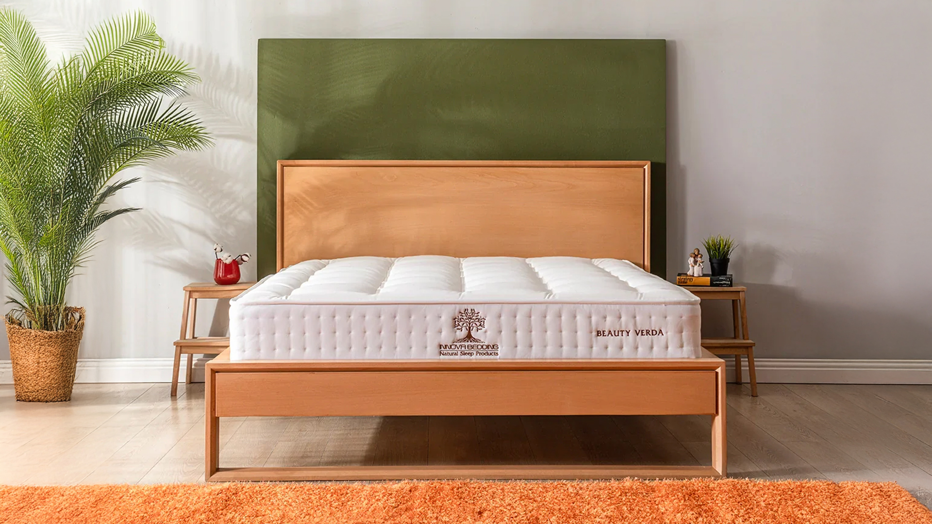 Beauty Verda to w pełni naturalny, ręcznie wykonany materac stworzony z wysokiej jakości lnu, bawełny i wełny. Model ten wyróżnia się wysoką oddychalnością oraz doskonałą regulacją temperatury, dzięki czemu zapewnia zdrowe i komfortowe środowisko snu. W jego wnętrzu zastosowano system sprężyn kieszeniowych, który gwarantuje równomierne podparcie ciała oraz minimalizuje przenoszenie ruchów partnera.