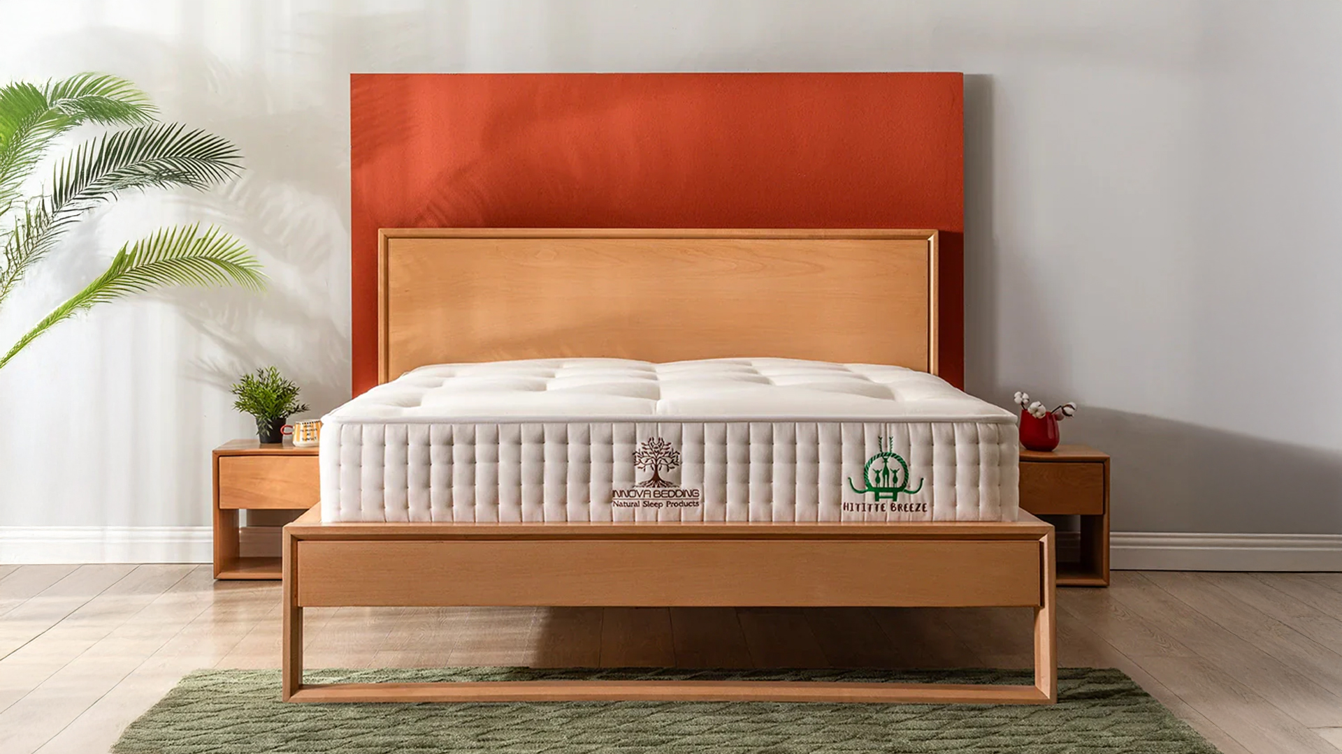Wysoki materac z systemem sprężyn kieszeniowych połączonych z przewiewnymi materiałami