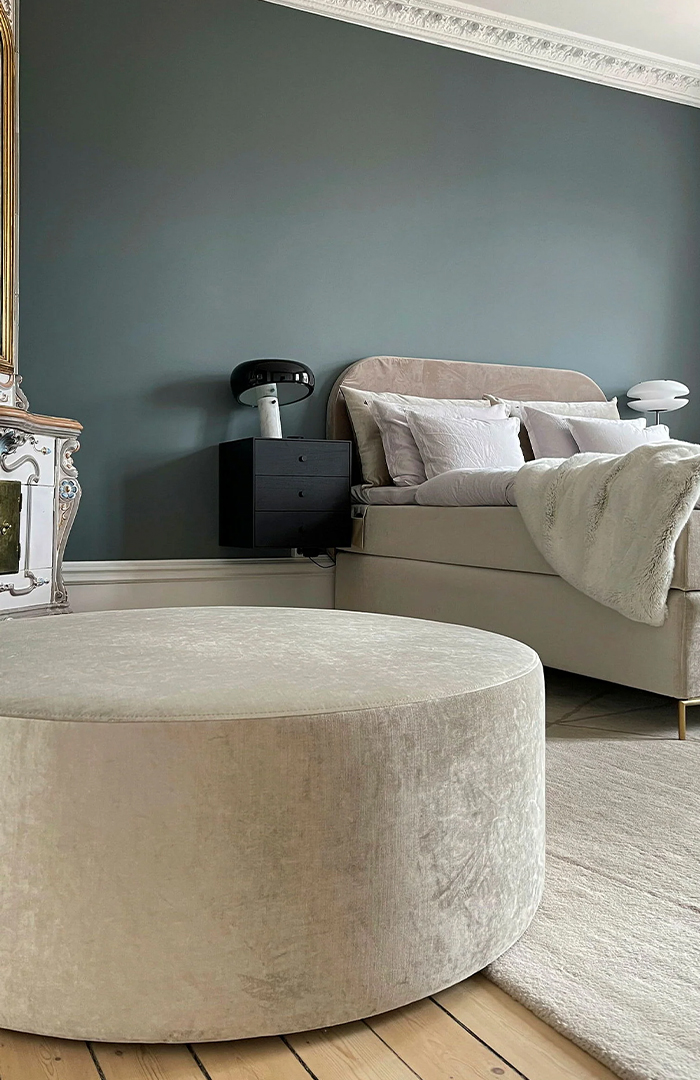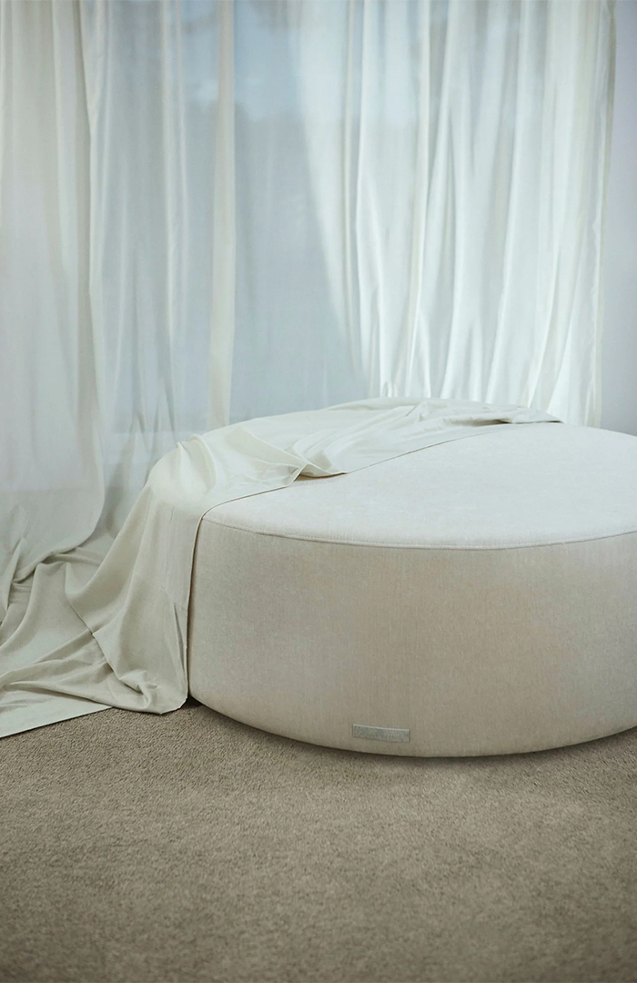 Okrągły puf Kobbe od Carpe Diem Beds sprawdzi się w sypialni lub w salonie. Komfort użytkowania