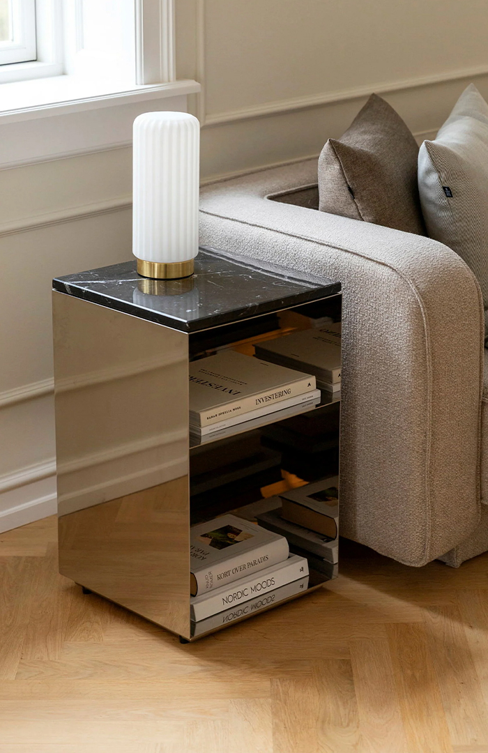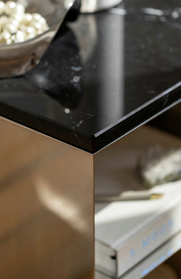 Blat marmurowy do szafki nocnej Holme to luksusowy i praktyczny dodatek. Subtelny wzór marmuru i