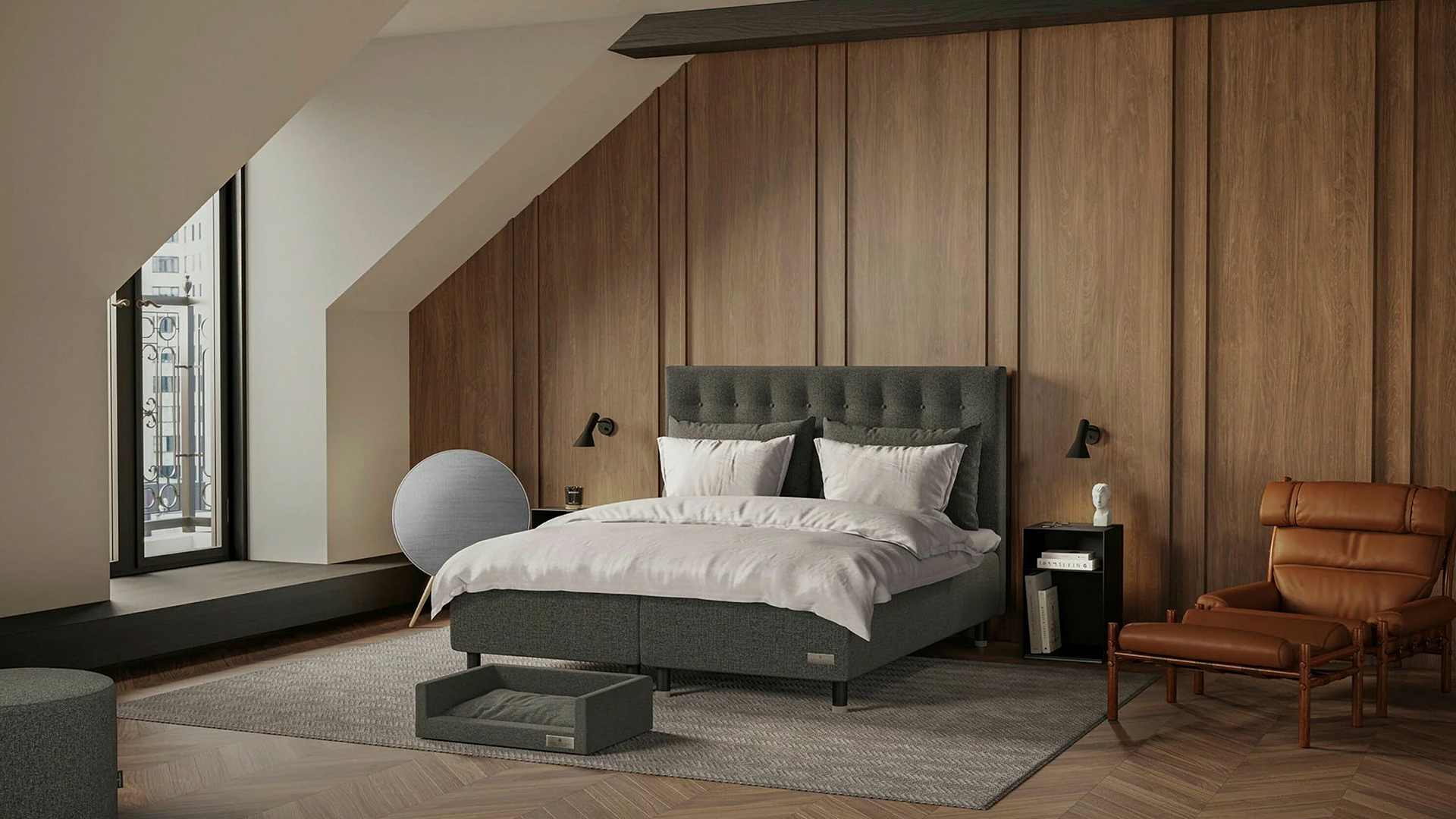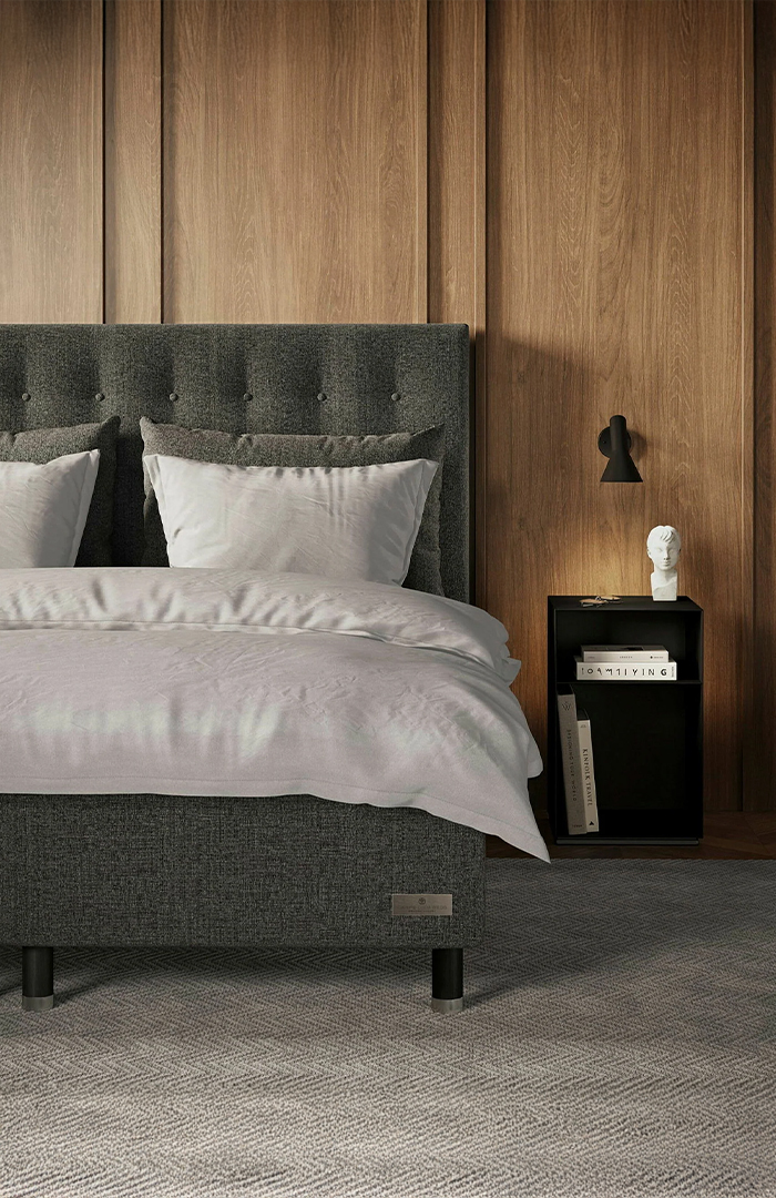 Tapicerowany zagłówek z guzikami wytworzony ręcznie w Szwecji. Jego ponadczasowy skandynawski design łączy w sobie subtelną elegancję i wyrafinowany luksus – to nowoczesna interpretacja prawdziwej klasyki. Pasuje do wszystkich łóżek Carpe Diem Beds z wyjątkiem Vindö. Producent oferuje 44 rodzaje tkanin obiciowych do wyboru.