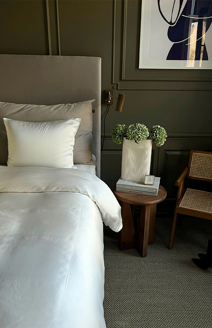 Gładki, minimalistyczny zagłówek tapicerowany. Zapewnia miękkie oparcie dla pleców podczas czytania lub jedzenia śniadania w łóżku. Wykonany ręcznie w Szwecji. Dostępny w kilku rozmiarach. Pasuje do wszystkich łóżek Carpe Diem Beds z wyjątkiem łóżka Vindö. Do wyboru są 44 ekskluzywne tkaniny obiciowe w różnych kolorach.