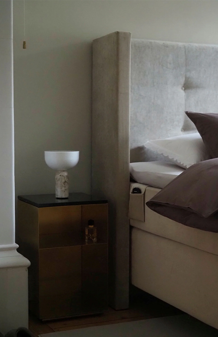Tapicerowany zagłówek z dźwiękochłonnymi panelami bocznymi i ozdobnymi guzikami na tylnym panelu. To jedno z najwyższych wezgłowi łóżek Carpe Diem, a jednocześnie nieco niższa wersja oryginalnego Tornö. Wykonane ręcznie w Szwecji. Dostępne w dwóch rozmiarach. Do wyboru są 44 ekskluzywne tkaniny obiciowe w różnych kolorach.